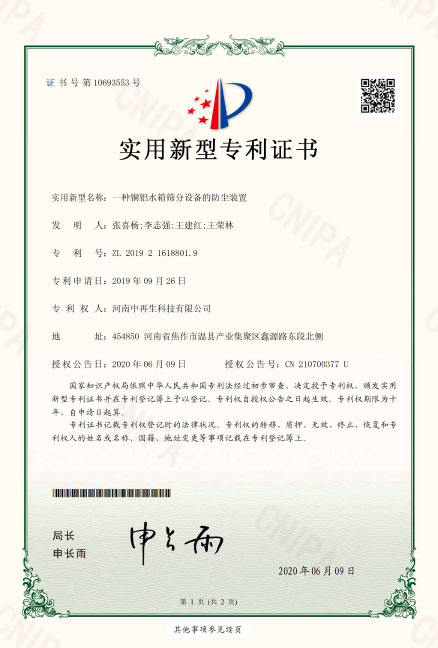 ZL2019216188019一種銅鋁水箱篩分設備的防塵裝置